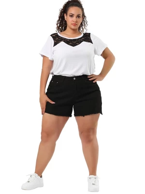 Agnes Orinda Women’s Plus Size Denim Mid-Rise Stretchy Raw Hem Casual Jean Shorts