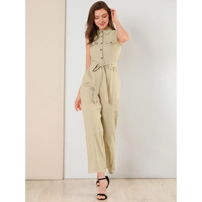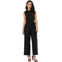 Looking cool is an easy job when you’re wearing this sleeveless jumpsuit. Check off the summer trend with this khaki jumpsuit, which is cut from comfy woven cotton and fitted with slant pocket. This button up jumpsuit brings modern charm with its defining waist tie. Working nine to five just got a little more fun with this elastic back jumpsuit.