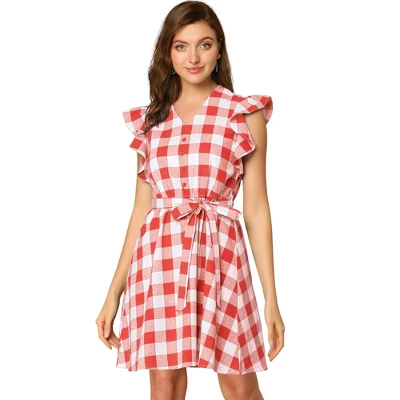 The shirt dress is a must-have piece for summer! Create a retro silhouette with this vintage check shirt dress. This ruffled-sleeved dress will see you through warmer days in an effortless style. With an on-trend check print, this classic button-decor style boasts a shirt dress shape and nips in the waist with a tie waist for showing your waistline.