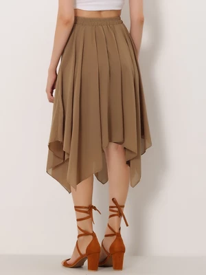 - Chiffon Fabric, Elastic Waist, Button Decor Side, Asymmetric Hem, Fully Lined, A-Line, Midi Skirt