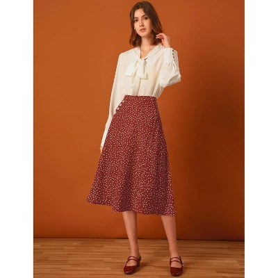 - Allover polka-dots print adds a vintage style to this flattering midi skirt
