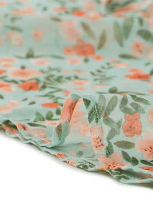 - Floral Print, Sleeveless, Sweetheart Neck, Tie Back, Ruffle Layered Hem, Mini Length, Elastic Waist