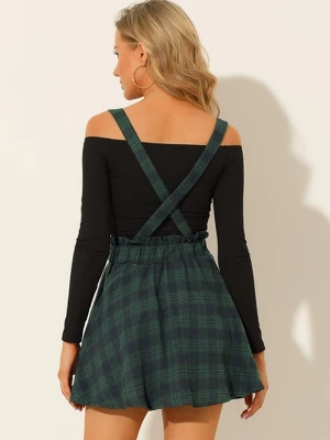 - High Waist, Elastic Waist, Detachable Suspenders, Unlined, Plaids Skirts