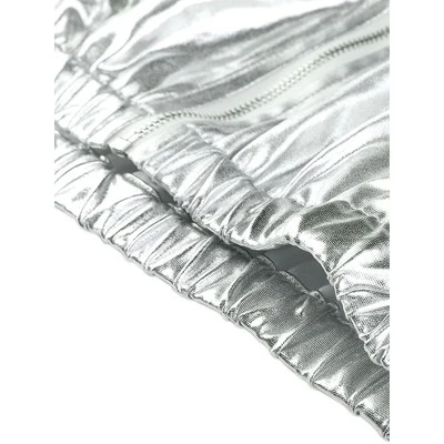 Shimmering holographic and metallic fabric is unique and shows your character. It’s also outstanding among the public. Add an instant layer of partygoing charm to any look with this jacket in the shimmering metallic, which is your new warm-up must-have item. A bold metallic design lends a distinctive style to this jacket featuring a hood to stave off the breeze. This jacket can easily be worn every day with any outfit! The zipper in the jacket can also be easily dressed up or down. Simply pair it with a t-shirt or camisole and shorts for day to night, and you will be a mostly bright one.