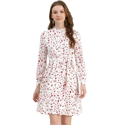 The bohemian floral prints with wine hues and flattering shapes look cute and suitable for people of all ages. The fabric looks very light and comfortable, and it is silky and elegant. It is designed with a tie waist, but you can choose to wear it without a belt. The knee-length design and an elastic waist add gentle movement to this softly pleated floral dress. High collars and long sleeves are suitable for spring and autumn, keeping you warm when the temperatures start to drop.