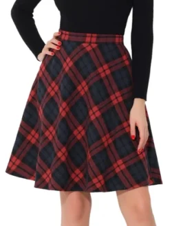 - Elastic Waist, A-Lined, Knee Length, Plaids, Fully Lined