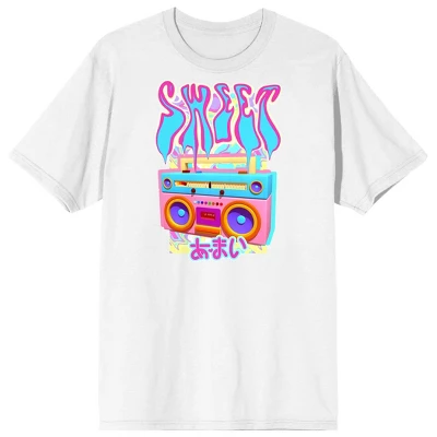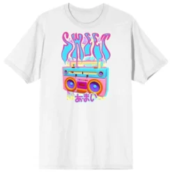 - CUSTOM DESIGN: A pastel boombox appears on the front of this graphic tee under purple and blue letters that spell out, “Sweet.” 90s kids who remember the Y2K trend will love the fun custom design on this t-shirt.