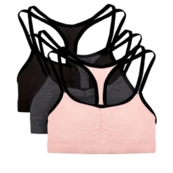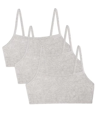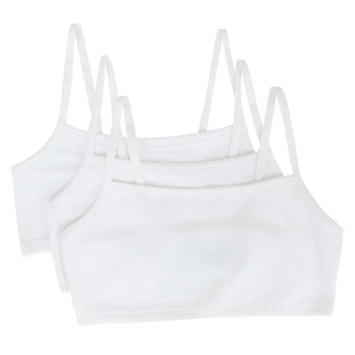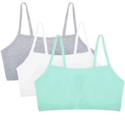 Basics bras for ladies are a wardrobe essential. The Fruit of the Loom Womens Spaghetti Strap Cotton Sports Bras can be layered under any shirt for a pop of color or additional coverage and support. These cotton pullover bras are perfect for everyday wear, designed with easily to hide spaghetti style straps and soft, stretch fabric for a comfortable and flexible fit. A comfortable and lightweight alternative to an underwire bra, the Fruit of the Loom Womens Spaghetti Strap Cotton Sports Bra includes 3 pullover sports bras perfect for everyday wear or low impact workouts. Layer the bras for added support and a strappy look.Wire-free bras designed with soft, stretch cotton for a flexible fit plus 2-ply construction that comfortably hugs and supports while offering modesty without padding. Cami bra style works well under low cut necklines and spaghetti bra straps hide easily under clothing. The ultimate comfort bras, weve thought of everything including a tag-free and hardware-free design. No itchy tags or metal slides on these bras. Our Unconditional Guarantee ensures that you get the best product every time or your money back. So run, jump, bike, or sprint happy with Fruit of the Loom. Additional colors available.