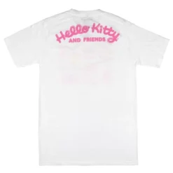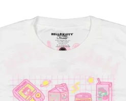Hello Kitty is known for her kind heart and her love of baking cookies. She loves her mom’s apple pie and loves to collect things. She is known and recognized by her red bow. Kitty White’s character was created in 1974, the Hello Kitty media franchise has grown to include clothing, accessories, toys, games, books, manga, anime series, and music albums, along with other various product lines and media productions. This white tee features a front mostly pink grid design of snacks and games. This top is made of 100% Cotton and is tagless for added comfort. Listed in Junior sizes.