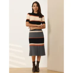 STYLE – Keep your look formal and elegant in fall weather with this work dress from Hobemty, featuring a striped pattern, mock neck, and A-line fit. OUTFIT – Paired with a delicate necklace and heels for a chic office look. Comfortable and classic, this knitted dress is perfect on its own or as a layer under a blazer or jacket. OCCASION – Focused on Ladies’ Semi-Formal Wear – This dress can be a perfect addition to almost any outfit from formal to daily wear, great for work, meetings, office, businesses, work, parties, cocktails, weddings, casual, daily dressing, etc.