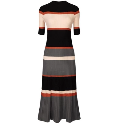- Keep your look formal and elegant in fall weather with this work dress from Hobemty, featuring a striped pattern, mock neck, and A-line fit