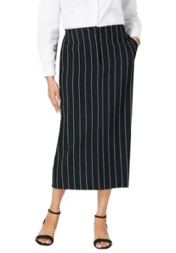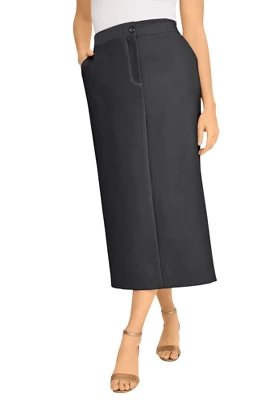 Our new slimming suiting collection features improved 2-way stretch that holds it shape and moves with you as you move through your busy day. Hidden tummy control panels offer a slimming fit. Back elastic insets; front slash pockets; button-zip closure. Back vent.