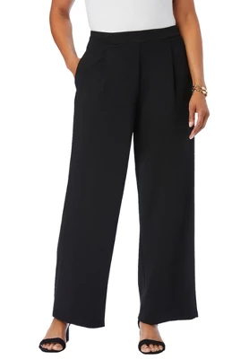 Our bestselling stretch crepe in a new wide-leg silhouette. With its straight wide leg and comfortable elastic waistband, this pant offers a fit that never fails to flatter. Take this classic silhouette out for an evening paired with a tunic and strappy sandals.