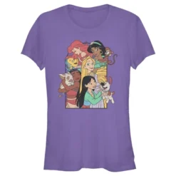 - Strut your stuff with this stylish new juniors’ t-shirt that is perfect for every occasion! Featuring Ariel, Jasmine, Moana, Rapunzel, and Mulan with their lovely pets including Flounder, Pascal, Abu, Pua, and Little Brother.