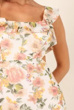 This midi length dress is a summertime showstopper! With its square neckline featuring ruffle detailing, back cut out feature and back tie closure it’s a super flattering style. Plus, the added bonus of an invisible zip makes it easy to get on and off.