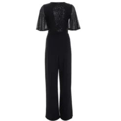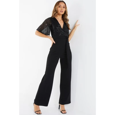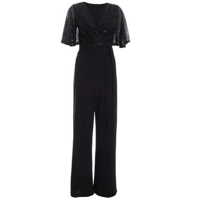 Embrace glamour in this sequin jumpsuit. Wrap design and palazzo style create an enchanting and stylish option for special occasions.