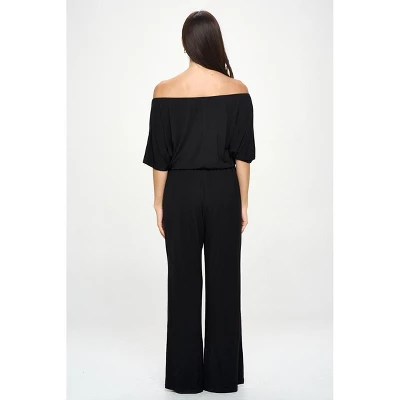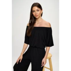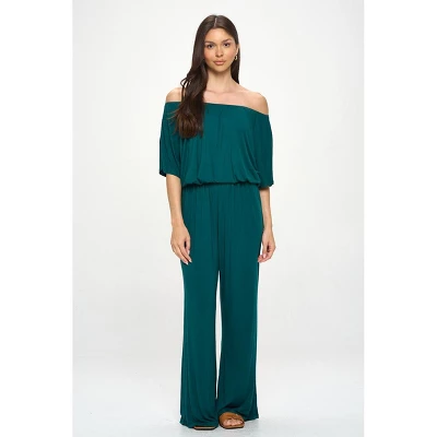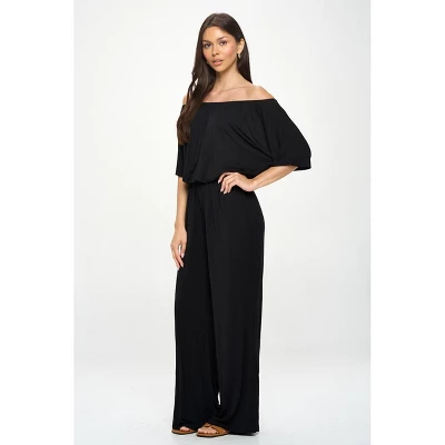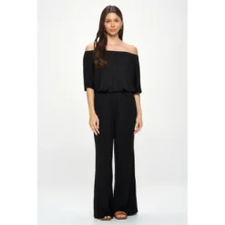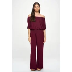 Our Joy Off-the-shoulder Jumpsuit with pockets is all you need to make a fashion statement at any occasion. This jumpsuit features a flattering off-the-shoulder neckline that adds a touch of femininity and elegance. The wide leg design not only elongates your silhouette but also ensures a comfortable and relaxed fit. Dress it up with statement accessories and heels for a night out on the town, or pair it with sneakers and a denim jacket for a more casual, daytime look. The possibilities are endless. Made in USA. Material: 95% Rayon Modal 5% Spandex. Machine washable.