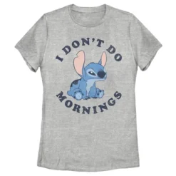 Ohana means family, and that means no tee gets left behind with this officially licensed Disney Lilo & Stitch I Don’t Do Mornings Dark Blue Women’s Tee! This design features a grumpy Stitch framed by “I Don’t Do Mornings.” Your popularity will skyrocket once you wear this new graphic tee, so grab one for yourself today!