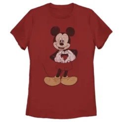 - Strut your stuff with this stylish new women’s t-shirt that is perfect for every occasion! Featuring a distressed graphic of Mickey Mouse making a heart with his hands.
