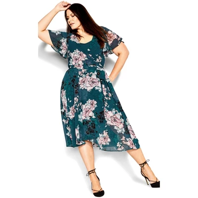 Wrap your curves in feminine florals with the ever flattering Blossom Short Sleeve Dress. This dreamy dress boasts a true wrap closure and plunging V-necklineBold and fiercely fashionable, no one does plus size fashion like City Chic. Loved around the globe for its diverse range of fashion-forward styles for any occasion. From show-stopping evening gowns to workwear and casualwear, City Chic will take your style to bold new heights. Available in sizes 14-32.