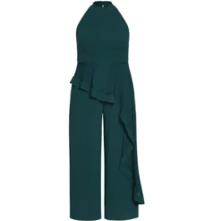 Jump straight to the top of your friend’s fashion hierarchy with our Class Halter Jumpsuit in emerald green! This beautiful piece features a high halter neckline, an elastic back waist for a flexible fit, and an asymmetrical drape waist feature that adds a touch of fashion-forward flair. The wide-leg pants are cropped at the perfect length, making this jumpsuit ideal for everything from weddings to date nights.Bold and fiercely fashionable, no one does plus size fashion like City Chic. Loved around the globe for its diverse range of fashion-forward styles for any occasion. From show-stopping evening gowns to workwear and casualwear, City Chic will take your style to bold new heights. Available in sizes 14-32.
