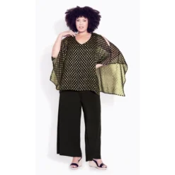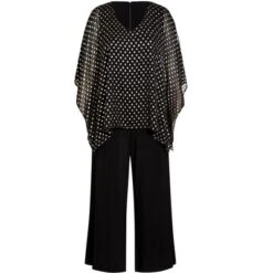 Utterly lavish in every way, the Eve Jumpsuit drapes your silhouette elegantly for an eye-catching finish! Featuring a gold foiled sheer overlay and wide-leg pants, this style is the perfect decadent look.Casual and effortless, Evans makes everyday style oh-so-easy. This beloved English brand offers quality, curve-loving pieces for any occasion that will make you look and feel your best. From easy-going dresses to statement essentials, Evans is comfortable, tasteful and perfect for your everyday wardrobe. Available in sizes 14 – 32.