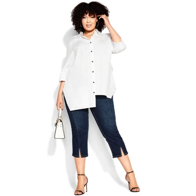 Update your basics with the dark wash Slit Denim Capri! These capris come in a cute cropped length with a centre split to the front hemline, high stretch denim fabrication with a flattering mid rise and elasticated waistband for a comfortable fit. Everyday style made easy, Avenue is your one-stop-shop for plus size fashion. Inspired by a comfort-meets-style approach, this effortless brand marries relaxed silhouettes with dynamic prints and colors. From casual daywear to staple denim, Avenue has simplified your everyday dressing. Take your day-to-day look to new heights with comfortable basics or eye-catchingly printed pieces, all designed to keep you comfortable while flaunting your curves to perfection. Available in sizes 14 – 40.