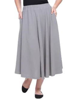 This adorable skirt will be your new go to item all year round! Featuring a pretty solid color and textured Liverpool fabric, you will be sure to draw everyones attention. This Plus Tasmin Flare Midi Skirt sits comfortably on the waist, with its elastic waistband and flares out to create a feminine look. With 2 front pockets this skirt is both stylish and functional. It pairs well with any top so its perfect for any occasion!